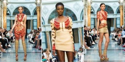 Barbara Biosah: DUMEBI specialises in exotic couture clothing created for young fashionable woman, mixing inspirations from Africa with a British modern twist and Parisian flair. Everything is handmade using the highest quality materials and focusing on great attention to detail. Being a creative person, most of my collections are inspired by art, mainly renaissance and old master paintings as they were the most vivid and dramatic artwork telling stories, mostly biblical. Because of my Nigerian heritage, I’m inspired by colour and bold shapes, so my designs are usually very dynamic and strong. One thing I felt that was missing from some of the Haute Couture brands that inspired me, was that I would go to the stores and it was completely different than the catwalk, everything was watered down and marketed for an older crowd. The concept of DUMEBI is that its' exotic couture clothing doesn’t need to be watered down for stores and can be as strong and as entertaining on the runway but also worn to fabulous events and outings by fashion forward young women.