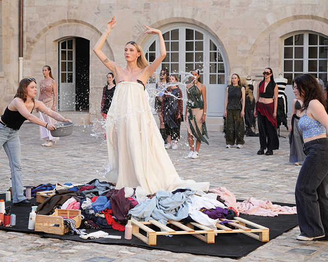 La dernière silhouette du défilé a été customisée en direct par des étudiantes de l’école