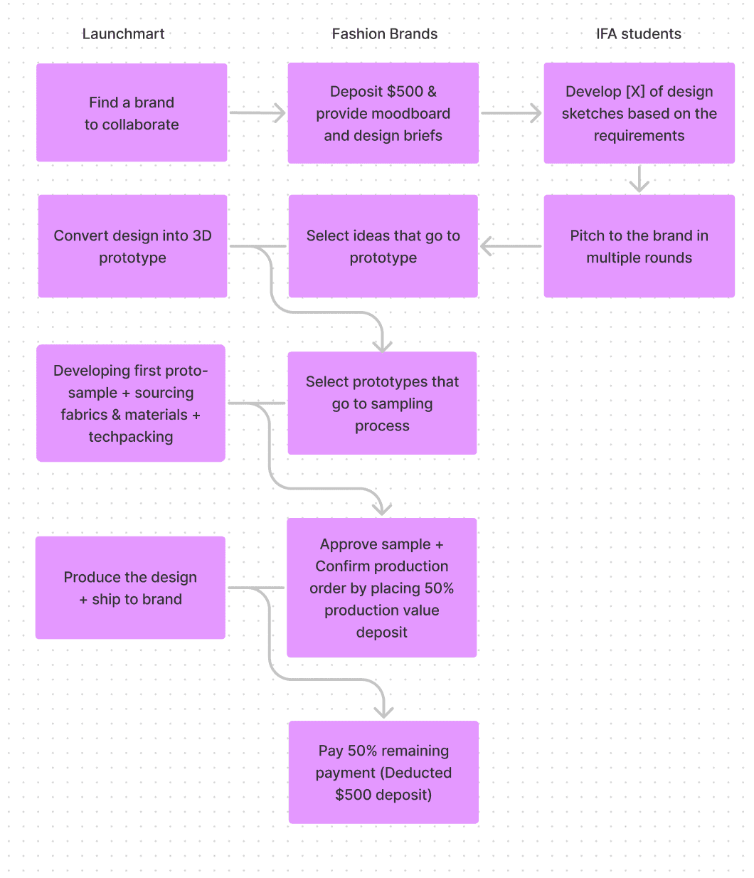Launchmart fournit et connecte les marques de mode de petite et moyenne taille avec des ressources prêtes à l'emploi, des outils simples à utiliser et un réseau de confiance afin d'accélérer le processus de développement de leurs produits et de les lancer plus rapidement sur le marché avec un coût et des risques initiaux minimaux.