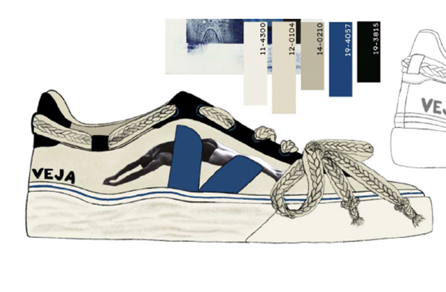 Avec l'utilisation de matériaux durables, cette collection présente 5 modèles de baskets influencés par les Jeux Olympiques 2024 à Paris, destinés à une clientèle jeune et bohème. Les couleurs vibrantes contrastant avec les couleurs neutres, ainsi que la silhouette classique mais chic des baskets créent une ambiance chaleureuse de jour d'été.