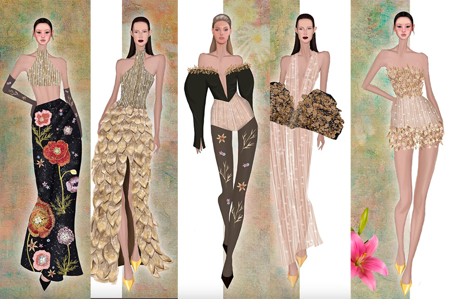 For this project, our student Khanh Ha Nguyen chose to create a mini collection inspiered by the fashion designer Rahul Mishra.