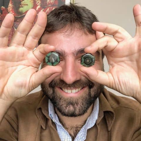 Stéphane with two emeralds Trapiches