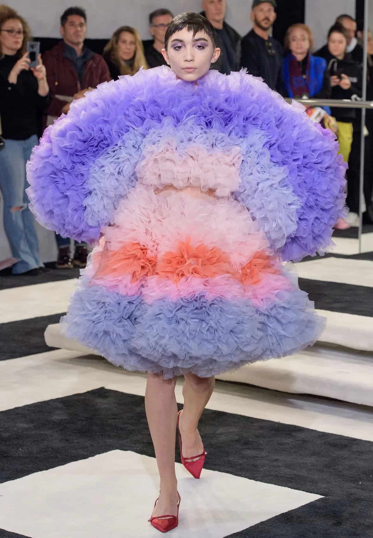 Japanese designer Tomo Koizumi presented a colorful and quirky collection, featuring voluminous dresses and bright colors. The collection was inspired by Japanese art and pop culture. The designs were dramatic and extravagant, with ruffled dresses and bold prints.